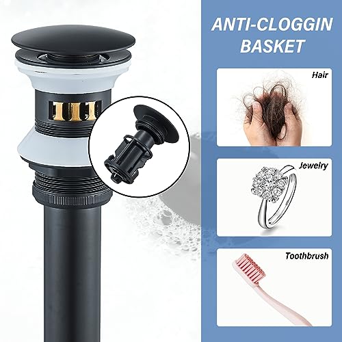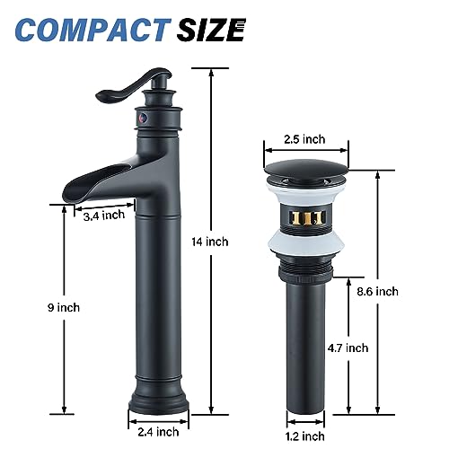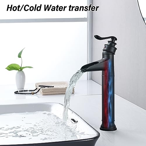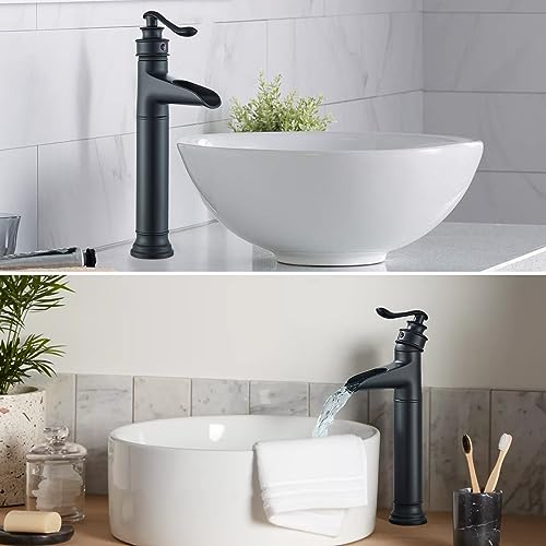 Saeuwtowy - Rubinetto miscelatore a cascata per lavabo e bagno, con pop-up automatico, per lavandino, lavandino, miscelatore per lavabo, miscelatore per rubinetto, in bronzo oliato (nero)
