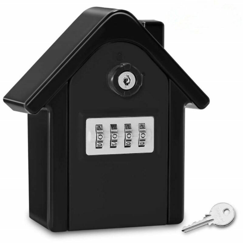 se necessario, puoi anche conservare piccoli oggetti, come carte di credito, carte d'identità, ecc. Due metodi di sblocco: questa cassetta portachiavi a combinazione contiene una password con 4 cifre e un pulsante di emergenza;