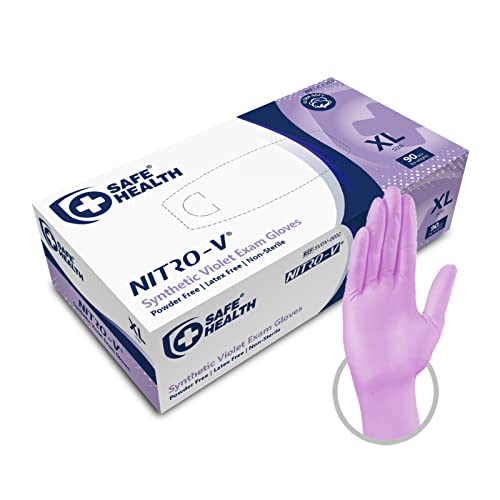 Safe Health Guanti monouso da esame Nitro - V in Nitile Vinile sintetico Viola Taglia XL | 90 pezzi | Senza polvere Senza lattice | CE EN455 Uso medico Ipoallergenici Alimentare Estetista