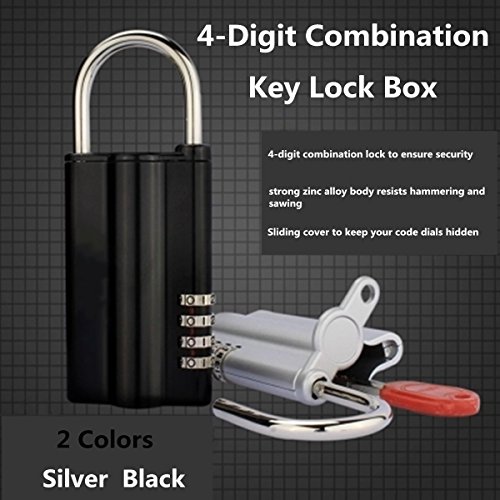Safe tyon portachiavi cassaforte cassetta portachiavi con 4 cifre Numero codice, cinghia tracolla, lucchetto a combinazione, Key Lock Box Esterno Interno di acciaio Inossidabile, Nero e argento nero