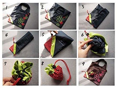 10 borse shopper compattabili, design a fragola, 40 x 40 cm, colori vari.