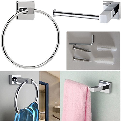 Safekom Set con porta-rotolo squadrato per carta igienica e anello porta-asciugamani, entrambi cromati