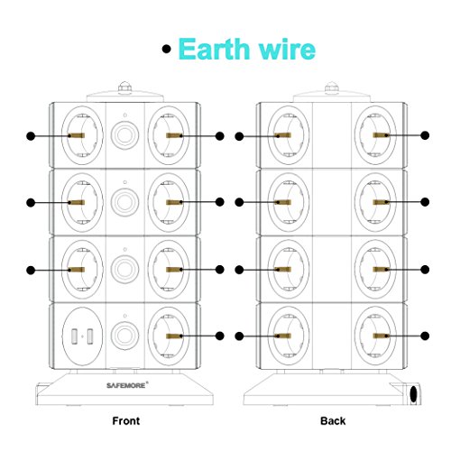 15 prese con protezione di sovraccarico includono PORTA della CASSAFORTE che proteggerà i bambini da una scossa elettrica.