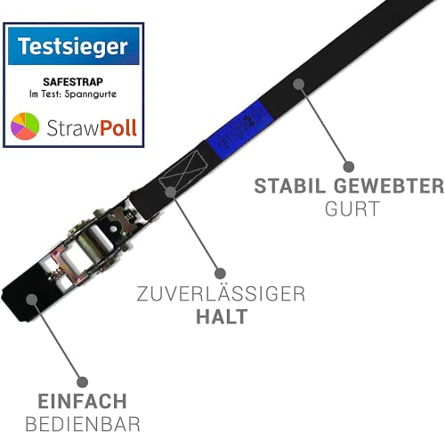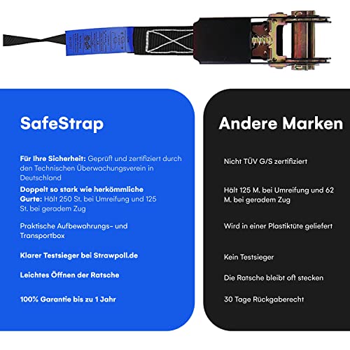 SafeStrap cinghie di tensione - estremamente robuste cinghie di stivaggio in conformità a EN 12195-2 con TÜV G/S - 6 m lungo cinghie di bloccaggio con una capacità di 1600 kg (4 pezzi)