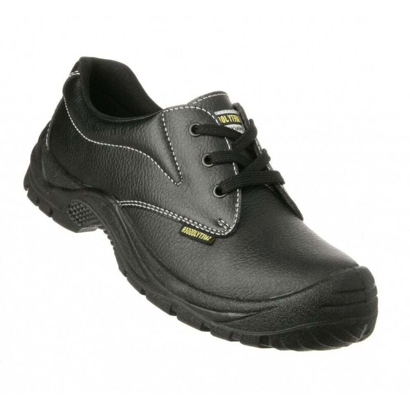 Standard: S1P - SRC Scarpa in pelle Colore nero Fodera in rete di nylon traspirante Antistatico Suola antiscivolo Intersuola in acciaio antiperforazione Antiurto Punta in acciaio Suola in PU Tacco con sistema di assorbimento degli urti Suola resistenti all'olio Peso di una scarpa nella taglia 41: 520 g Informazioni aggiuntive: Gli involucri protettivi e i cappucci terminali standardizzati EN 20345 resistono a un'energia di 200 Joule. Questa energia corrisponde a un oggetto di 20 kg che cade da un'altezza di un metro. In caso di schiacciamento (altezza di caduta pari a 0), il guscio protettivo 200J resiste ad una forza pari a 1.500 kg