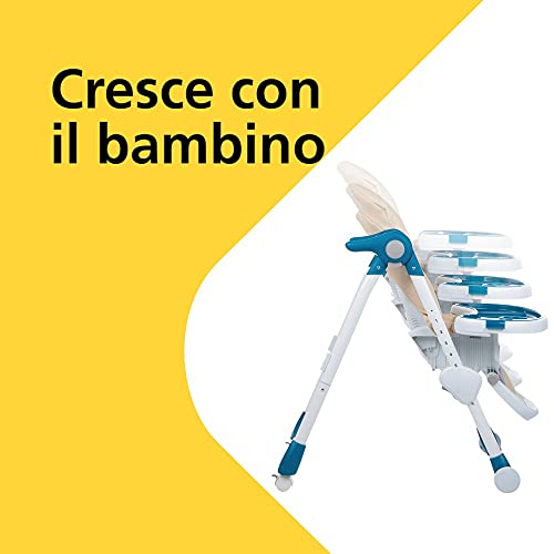 Seggiolone evolutivo: seduta regolabile in altezza in 6 posizioni e vassoio regolabile in 3 posizioni per seguire la crescita del bambino