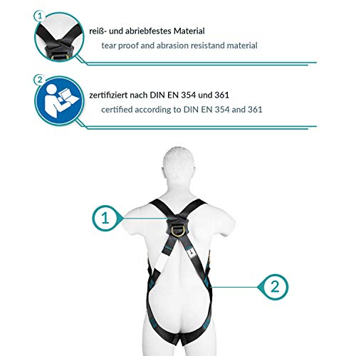ACE Safety, set di protezione anti-caduta con imbracatura per tutto il corpo EN361, smorzatore con cordino a Y di 1,5 m EN354, EN8513, peso massimo autorizzato 100 kg, omologato CE