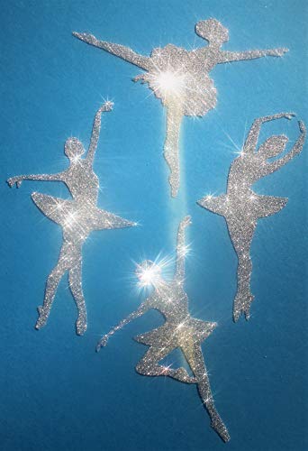 Safirmes - 4 ballerine attaccabili con trasferimento termoadesivo hotfix, glitter, colore: argento, dimensioni: 8,5 cm