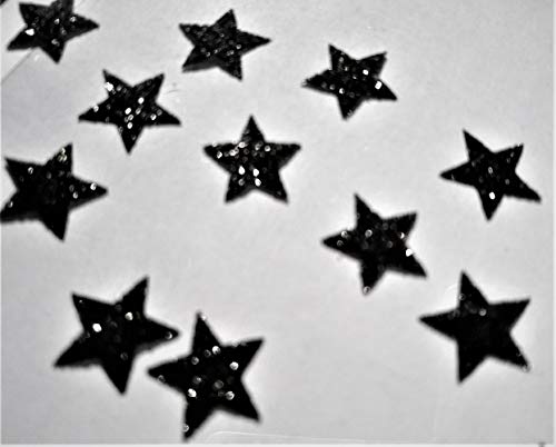 SAFIRMES - 20 stelle di colore nero, toppa termoadesiva, 1,5 cm, effetto brillante