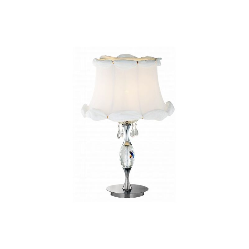 paralume in tessuto delicato Materiale: paralume in tela, base in vetro/metallo Colore base: bianco Altezza: 63 Larghezza: 40 Profondità: 40 Dimensioni (altezza/larghezza/profondità): 63x40x40 Peso (netto): 3,00 LED integrato: No Numero di luci sorgenti: 1 Include una sorgente luminosa: No Numero di sorgenti x attacco: 1xE27