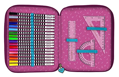 Contiene 46 pezzi: gomma, 2 matite in grafite, penne blu, nero e rosso, temperamatite e 18 matite colorate (1 ° compartimento).