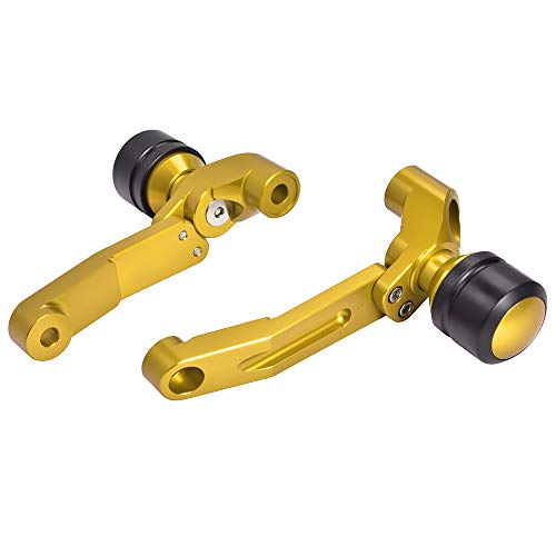 [Buone prestazioni]——-➤Le protezioni dei cursori del telaio aiutano a ridurre al minimo i danni quando la motocicletta viene scaricata e riducono i costi per le riparazioni.➤Forniscono protezione contro gli urti del telaio della moto, riducono l'impatto e i danni da incidente.➤ Facile da montare e rimuovere. Non è necessaria alcuna modifica.