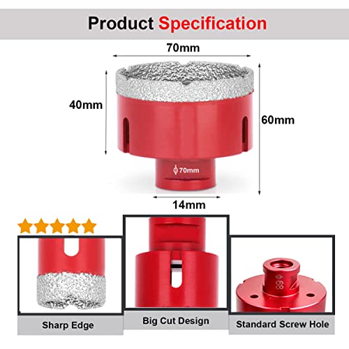 SagaSave 68 mm M14 Diamond Coating Drill Bits Hole Seaw, lunga durata foro taglierina apri per vetro, ceramica, marmo, ceramica, bottiglie, ecc. 1 pz
