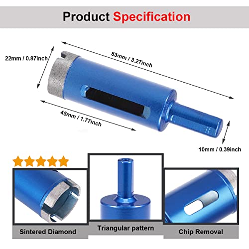 SagaSave Punta da trapano per sega a tazza per muratura ad alta velocità, 22 mm, 6-50 mm, diamantata per pietra, granito, cemento, vetro, porcellana, mattoni, 1 pezzo, 1 pezzo
