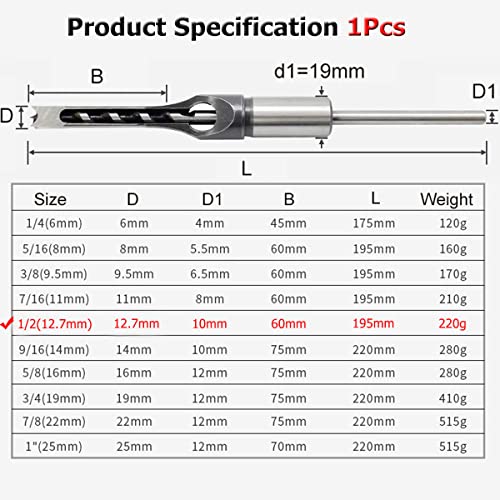 SagaSave 1/2 "Square Hole Drill Bit Opener, 12,7 mm High-Carbon Steel Hollow Scalpello Mortasa Strumento elettrico per la lavorazione del legno, 1 PZ