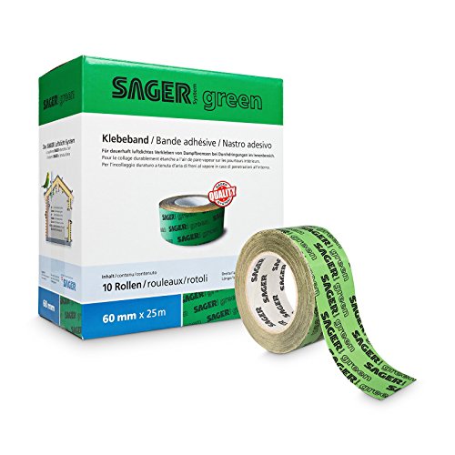 SAGER Green nastro adesivo (verde) Per l' applicazione di vapore di blocco freno a fogli, Freno A Vapore, vapore, vapore Blocco, Clima membranen, OSB Platten