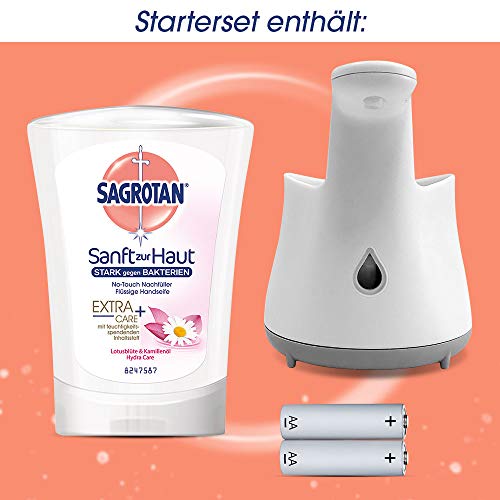 Sagrotan No Touch - Dispenser automatico per sapone, inclusa ricarica ai fiori di loto e olio di camomilla