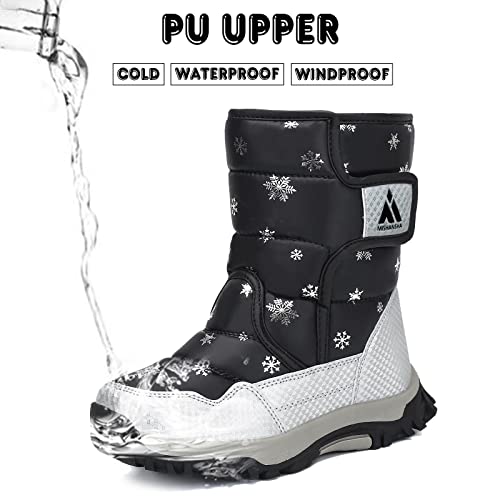 SAGUARO Stivali da neve per bambini, invernali, foderati in pelliccia, impermeabili, per escursionismo, Nero 27 EU