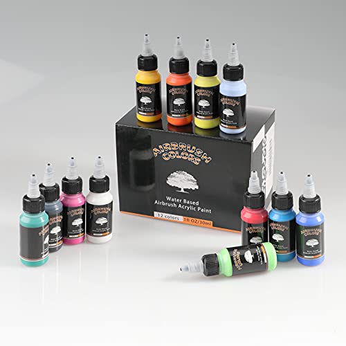 SAGUDIO Pittura Colori per aerografo 12 Colori (30 ml/1 oz) di Base Pronto per Acrilico Air Brush Painting Set, Acqua Impermeabile Asciugatura Rapida
