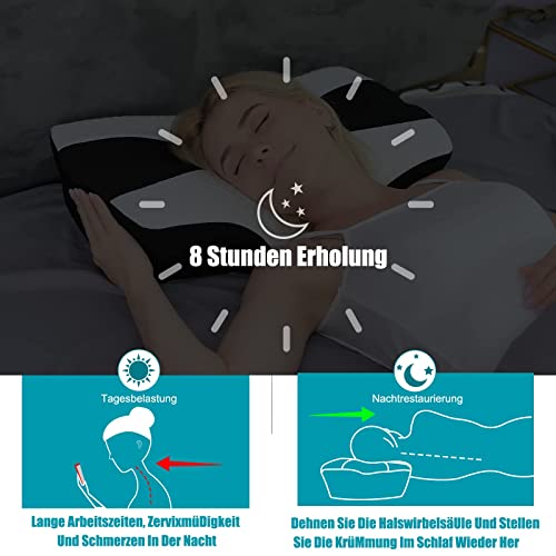 ✅【Cuscino cervicale ergonomico】Il cuscino cervicale per dormire in schiuma di memoria di alta qualità e un design di contorno collaudato che supporta e allinea perfettamente la testa, il collo, le spalle e la schiena, consentendo di passare comodamente tra le diverse pose. Vi sveglierete rilassati e pieni di energia per iniziare la giornata.