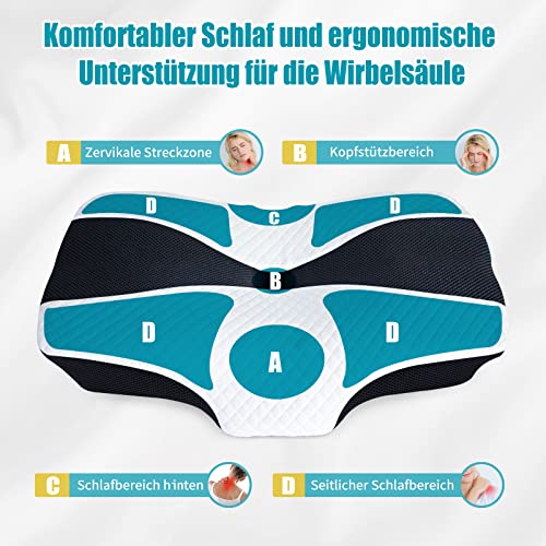 SAHEYER Cuscino Ortopedico Cervicale, Cuscino Memory Foam Cervicale per Ergonomico di Sostegno, Cuscino Antirussamento, Ideale per Chi Dorme di Fianco, sulla Schiena o sulla Pancia, 60 x 41 x 14/11cm