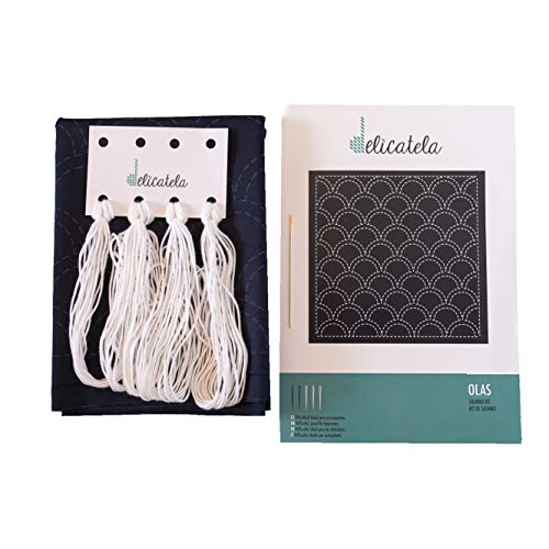 Sahiko | kit da ricamo giapponese | tessuto pre-stampato (30cm x 30cm) | Color blu (onde)