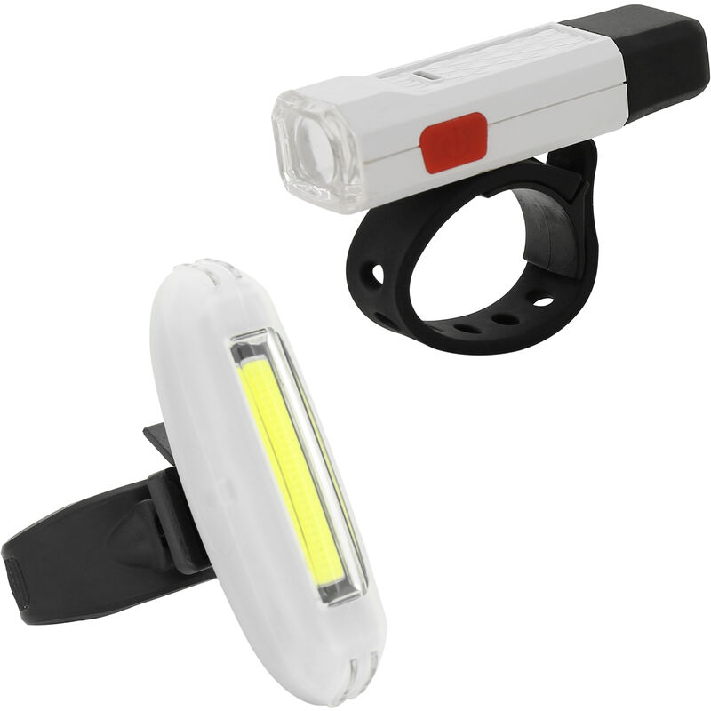 Sono incluse sia le luci anteriori che quelle posteriori. Super luminoso senza pericolosi abbagliamenti. Assolutamente un meraviglioso accessorio per bici per gli appassionati di ciclismo. Caratteristiche: Viene fornito con una luce brillante anteriore e posteriore, che offre grande visibilita e sicurezza di notte. Sia le luci anteriori che quelle posteriori sono ricaricabili, basta collegarlo con qualsiasi dispositivo USB. Presenta un interruttore one-touch, 3 modalita di lavoro servono per diverse esigenze. Grandi prestazioni di impermeabilita, sicuro da usare in caso di pioggia e clima invernale. (Suggerimento: evitare l'esposizione a lungo tempo in caso di pioggia). Dotato di una robusta staffa di montaggio regolabile, facile da installare e adattarsi alla maggior parte dei tipi di manubri per biciclette. La luce rossa si accende quando la batteria e scarica per ricordare la ricarica. Puo essere utilizzato anche come luce di emergenza, torcia elettrica, faro per casco per