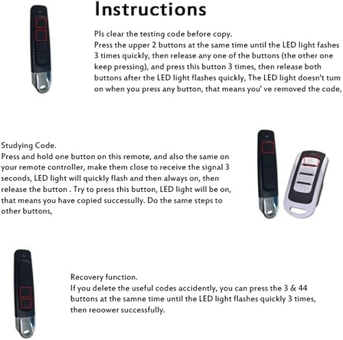 【Telecomando 4 in 1】.Il dispositivo può clonare fino a 4 pulsanti remoti dallo stesso telecomando o da diversi telecomandi consentendo di trasportare quattro telecomandi in uno!Ciascuna lettera corrispondente (A, B, C e D) può aprire ciascuna una chiave telecomandata diversa.