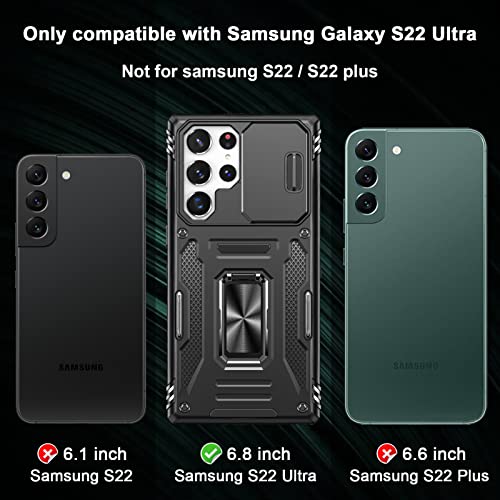 Saiboro Per Galaxy S22 Ultra Custodia Con Cavalletto E Cover Per Fotocamera, Cavalletto Con Anello Rotante 180° + 360° Integrato, Custodia Antiurto Per S22 Ultra (Nero)