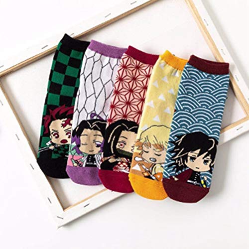 Saicowordist 5 paia di calzini Demon Slayer Nezuko Tanjirou Zenitsu Giyuu Shinobu Cartoon Anime Figura Stampato Medio-tubo Cotone Calzini Anime Fan Regalo