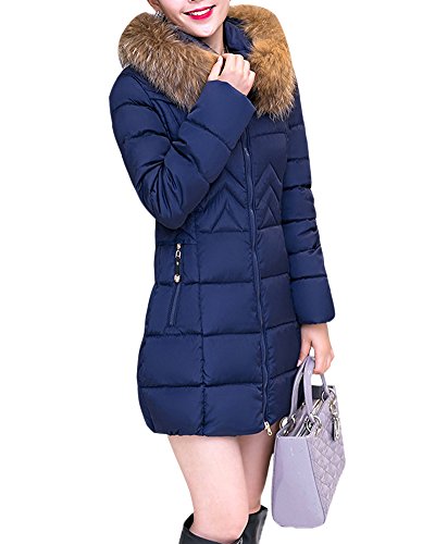 SaiDeng Donne Luxury Collo di Pelliccia con Cappuccio Giacca Lunga Marina 4XL