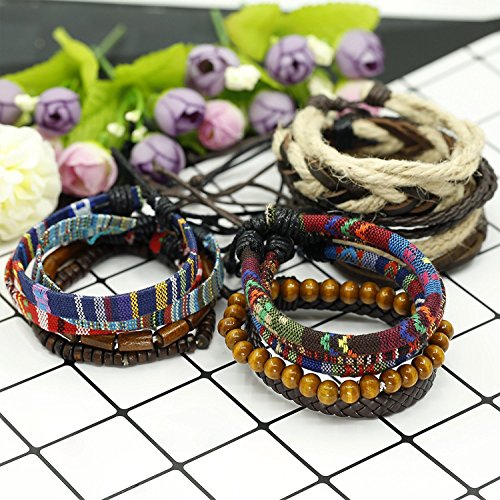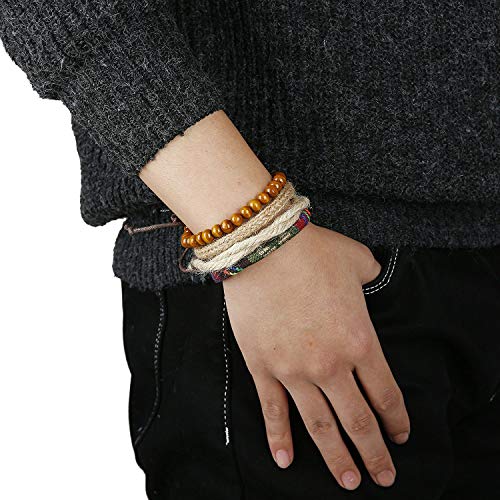Sailimue Gioielli in Pelle 15PCS Vintage Bracciali per Uomo Donna Braccialetti Braccialetto Perle di Legno Canapa Cords Etnico Tribal Charm Elastico