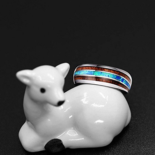 Sailimue Gioielli 8mm Titanio Anello per Uomo Cinturino di Fidanzamento Conchiglia Abalone e Legno Vintage Anelli Taglia 14-29