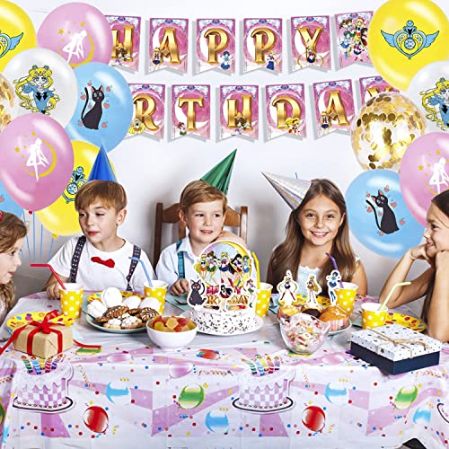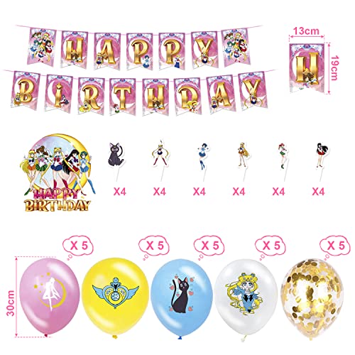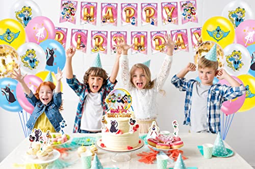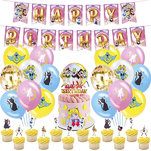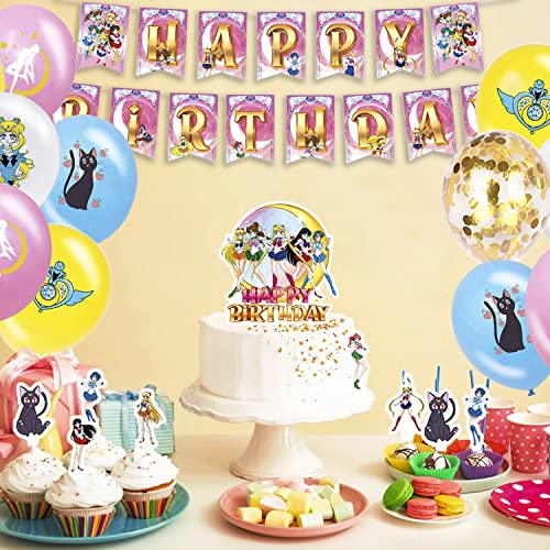 Sailor Moon Decorazione Festa di Compleanno 52 pcs, Sailor Moon Palloncini, Buon Compleanno Striscioni, Cupcake Topper, Sailor Moon Decorazione della Torta, Marinaio Luna Compleanno Decorazioni
