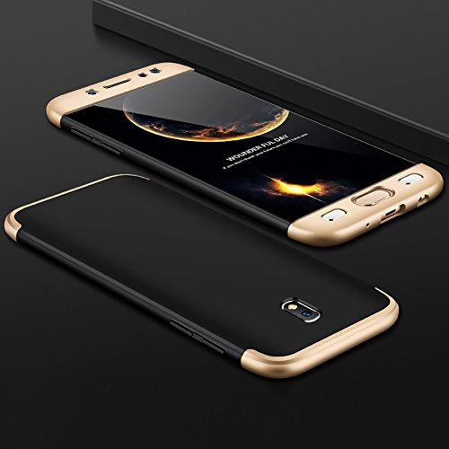 SainCat Custodia Galaxy J3 2017, Galaxy J3 2017 Cover 360 Gradi Full Body, Custodia Ultra Slim Plastica Rigida Protettiva Anti-Scratch Cover per Samsung Galaxy J3 2017-Oro e Nero
