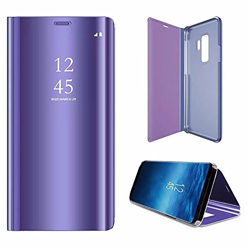 SainCat Custodia Galaxy S9, Cover Galaxy S9 Specchio Portafoglio, Custodia in Pelle Cover Specchio Libro e Plastica Rigida Antiscivolo Flip Cover per Samsung Galaxy S9-Porpora