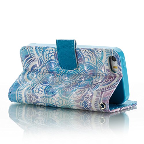 SainCat Custodia iPhone 5S, Custodia in Pelle Portafoglio Slim Bling Glitter Strass Antiscivolo Flip Cover per iPhone 5/5S/SE-Datura