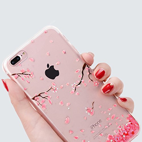SainCat Custodia iPhone 7 Plus, Ultra Slim Silicone Trasparente Morbido Gomma Fiore di Ciliegio con Bling Strass Shock-Absorption Cover per iPhone 7 Plus/8 Plus-Rosa