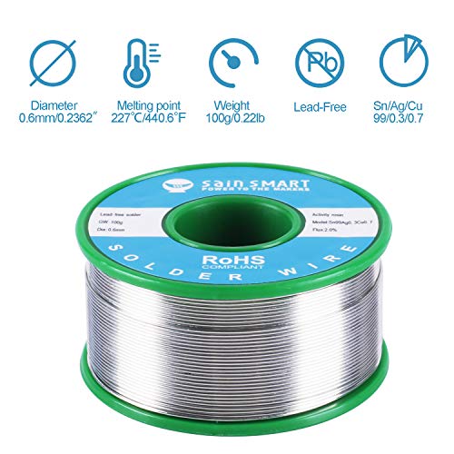 SainSmart 100g 0.6mm Filo di Saldatura Senza Piombo con Rosin2 Sn97 Cu0.7 Ag0.3, Filo di Stagno per Saldatura Elettrica (0.6mm, 100g /0.22lbs)
