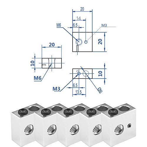 Blocco riscaldatore: 20 x 20 x 10 mm. Foro interno per vite di fissaggio: M6 e M3 (tubo di calore e termocoppia)