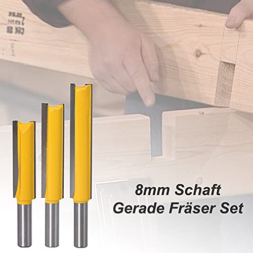 Saipor Set di 3 frese dritte, con fusto lungo da 8 mm, fresa a doppia taglierina diritta, lama da taglio per legno (8 x 1/2 x 50, 8 x 1/2 x 63, 8 x 1/2 x 76)