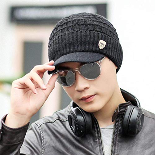Saisiyiky Cappelli di lana Uomo Inverno Cappelli Uomo Invernale Punto di invernale berretto da sci Nero
