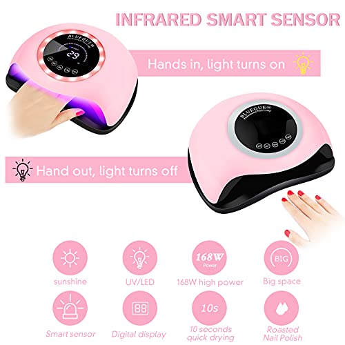 【168W Lampada Da Led Unghie】Super potenza da 168W, ridurre i tempi di asciugatura,offrendoti un'esperienza di unghie veloce e perfetta.