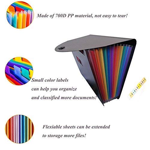 【Grande capacità】 Progettata con 12 tasche arcobaleno, questa cartella di file ha un'enorme capacità di carta e documenti. Può contenere circa 2500 file formato A4 e lettera. La dimensione approssimativa è 12,99 * 9,25 pollici (330 mm * 235 mm), la sua larghezza può essere flessibile con 1,96 - 10 pollici.