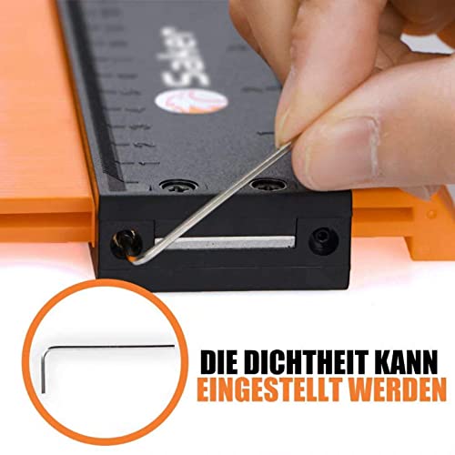 【Ampia gamma i utilizzi】 Con il calibro copiatore di contorni si possono circoscrivere i profili o i bordi e trasferirli con precisione sul materiale da tagliare. Ideale per ogni tipo di lavoro in cui il contorno deve essere replicato, come ad esempio nella lavorazione del legno, nella carrozzeria, in lamiere d'auto, nell'acciaio inox o per tutti i lavori di rifinitura dei contorni.