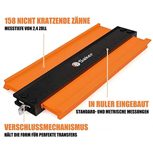 Saker Calibro copiatore per contorni con sistema di blocco, per una copia precisa, ideale per saldature irregolari e lavorazione del legno (12 cm + 25 cm)