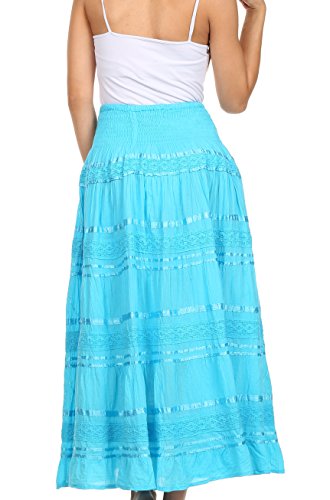 Sakkas 0604 Pizzo e Ribbon Contadino Boho Gonna - Turchese - Unica