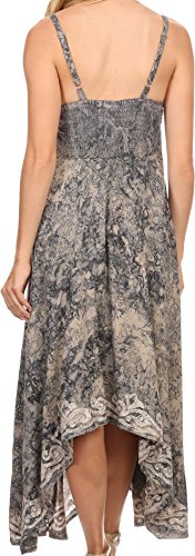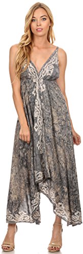 Sakkas 1579 - Neyva Lungo Fazzoletto Ricamato Hem Spaghetti Strap Tinti Batik Dress - Grigio - OS