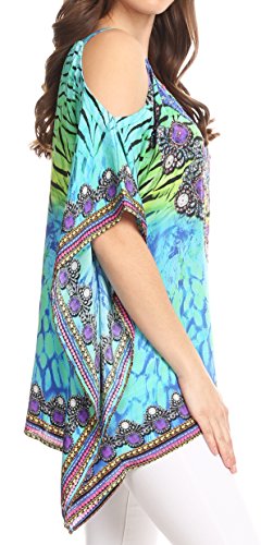 Sakkas 17259 - Saanvi Stampato Cravatta a Manica Corta Cinturino Collo Scollo a V-Collo Kaftan Top - WT53-Turco - S/M
