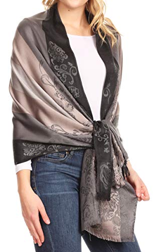 Sakkas 18204 - Sciarpa a scialle in Pashmina intrecciata con bordo reversibile morbido di seta donna Damari - Grigio - OS